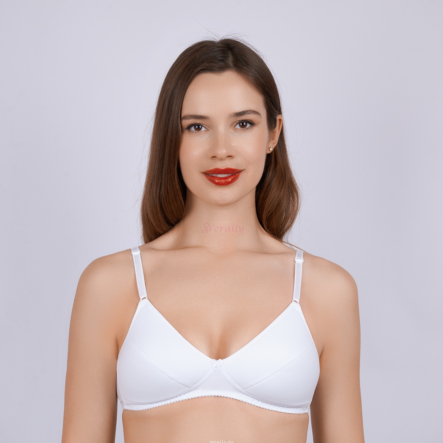 Бюстгальтер из эластичного хлопчатобумажного полотна, без каркасов. Чашка на дубляже.