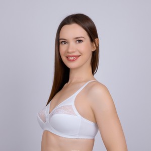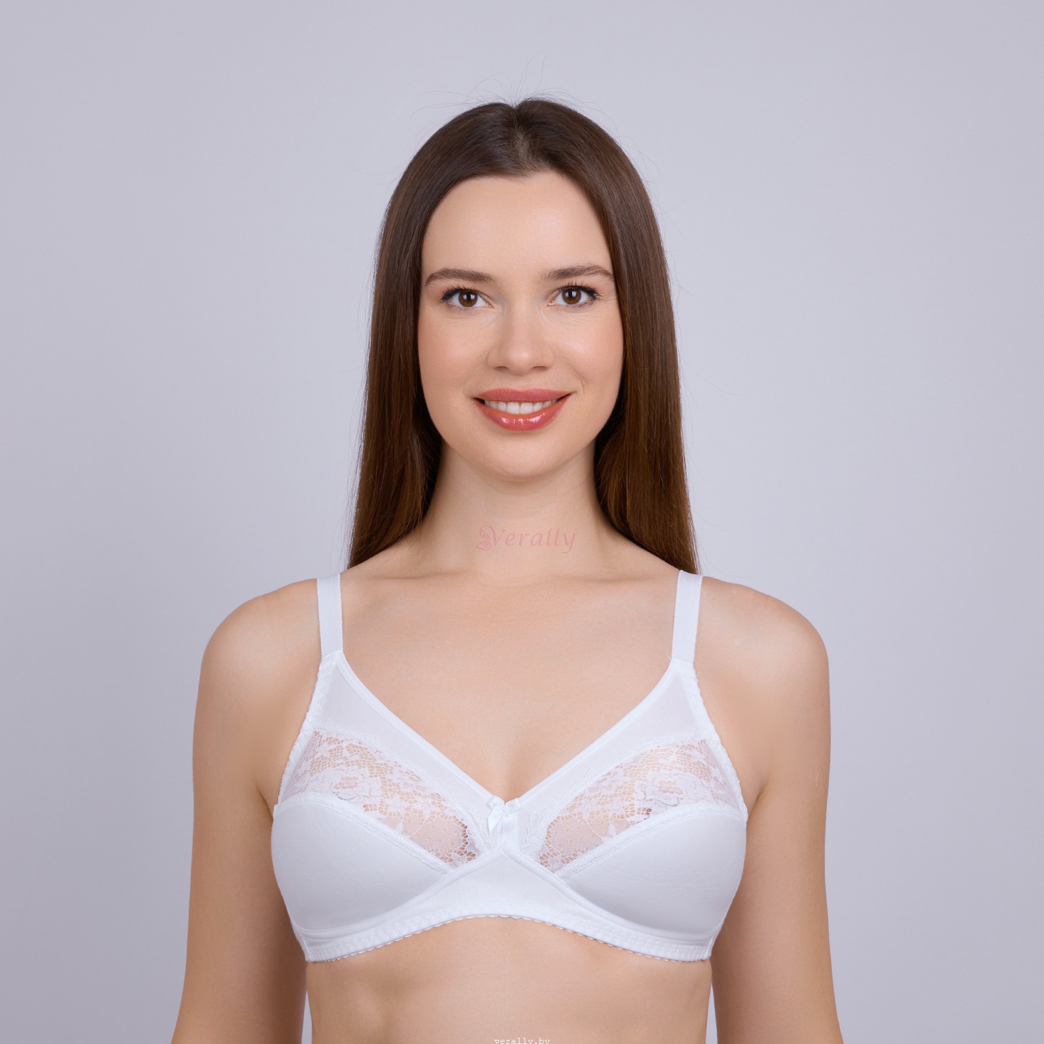 Бюстгальтер без каркасов. Нижняя деталь чашки на дубляже, верхняя- из эластичного кружева и эластичного хлопкового полотна. Отрезная деталь стана из эластичного хлопкового полотна.